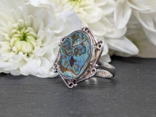 Cornish Sea Glass Ring Blue 925 Sterling Silver • Size P