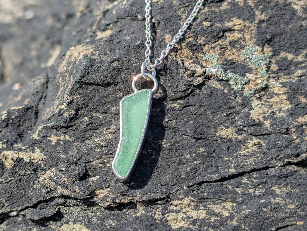 I only use naturally tumbled by the ocean sea glass, so each piece is different and unique. I don’t adjust or change the shape of any of the sea glass pieces – each one is as authentic as it gets!