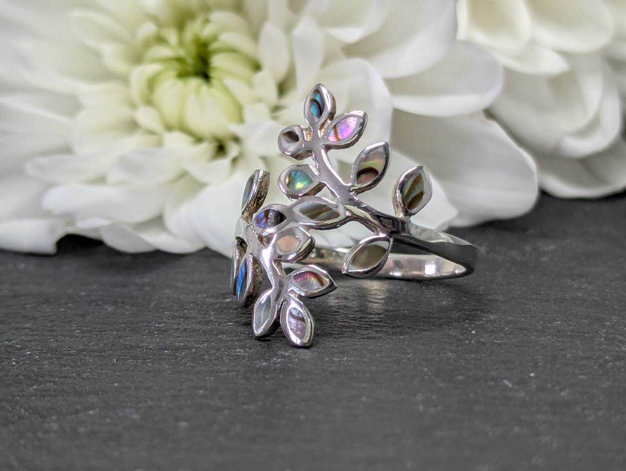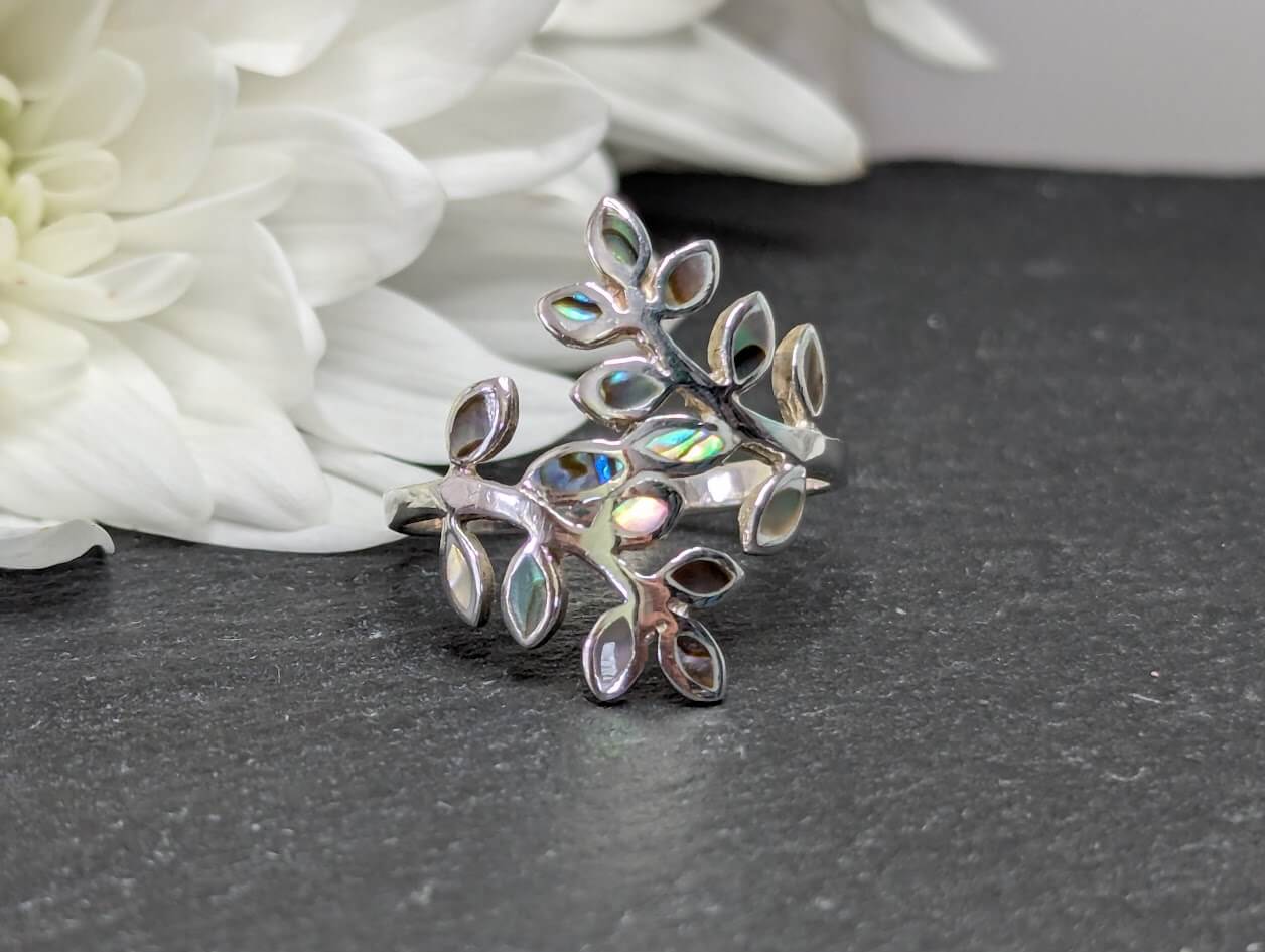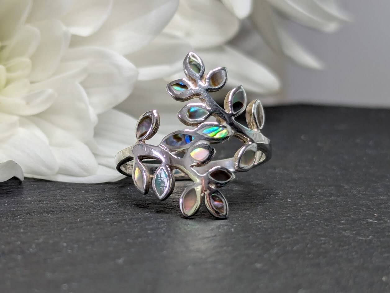 This beautiful Abalone Shell sterling silver ring is in pre-loved vintage condition. Which means it has been loved and worn by someone before, so you might see some signs of age and wear. These little marks and scratches make each piece unique and give it special character. Vintage jewellery tells a story, and its history makes it even more special! If you appreciate the charm of older items, you will surely enjoy wearing this one.