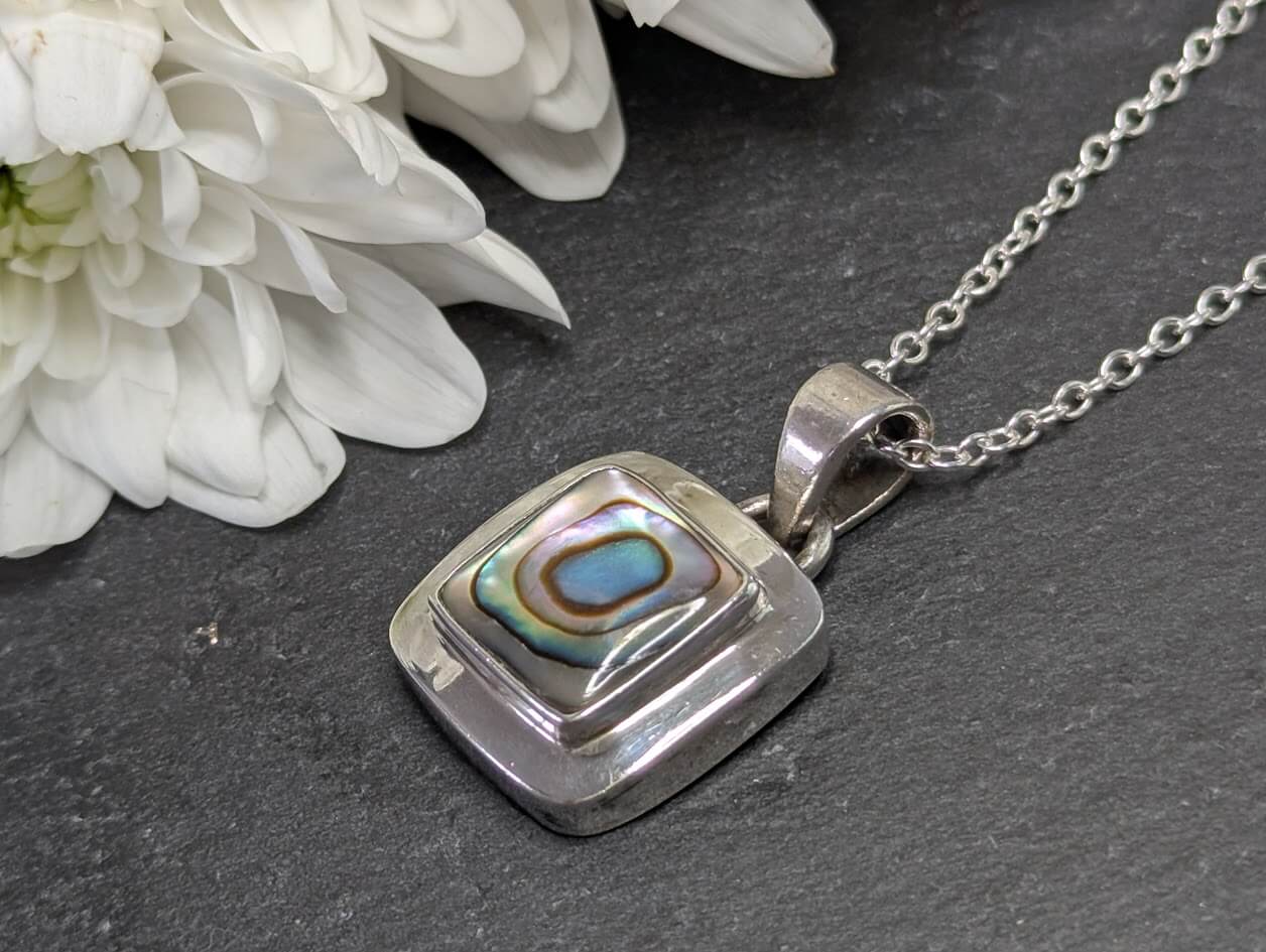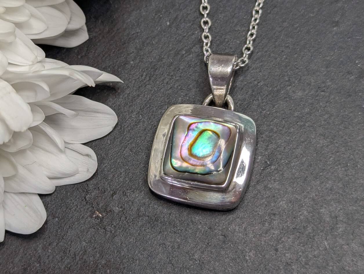 Beautiful Vintage Sterling Silver Abalone Pendant on a 18 inch Chain