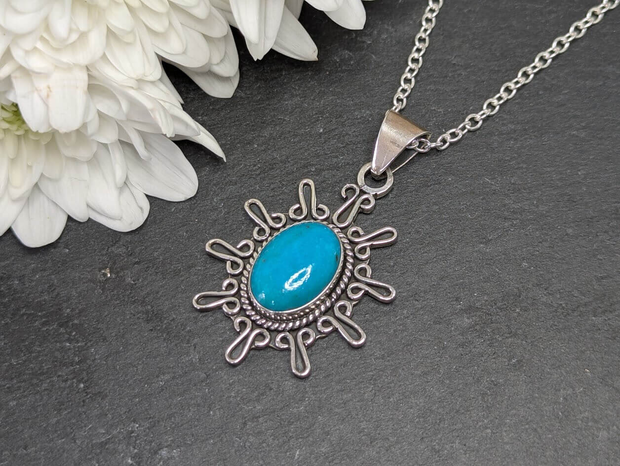 Beautiful Vintage Mexican Turquoise Sterling Silver Pendant on a 18 inch Sterling Silver Necklace.